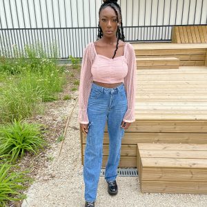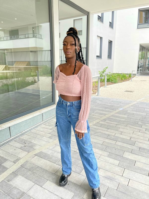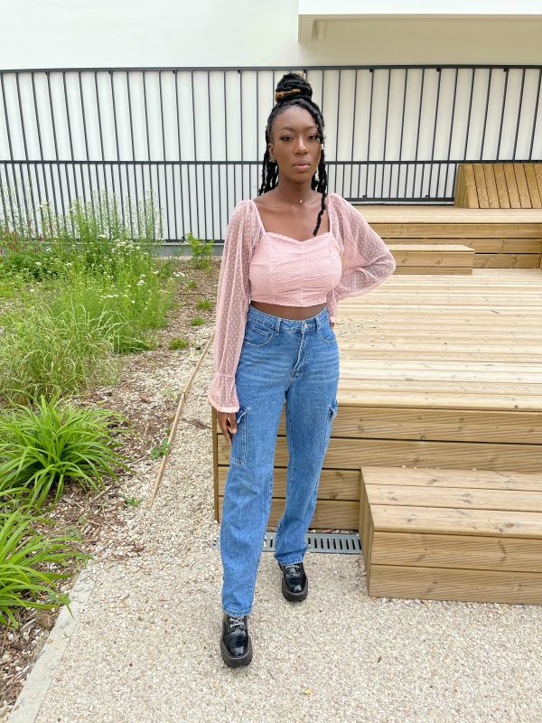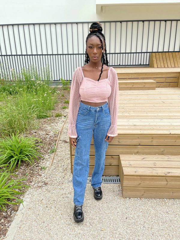 Entre sa couleur nude basique et ses manches bouffantes organza à pois, il est canon porté avec une jupe il va direct dans le panier. Il ne manque que le bas assorti et une paire de mules.