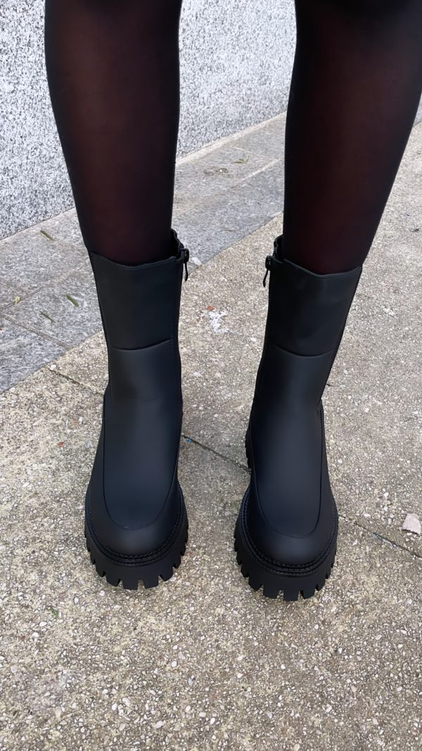 Optez pour un look monochrome avec cette paire de bottines noir effet gomme. Elles seront parfaites pour tous vos looks.